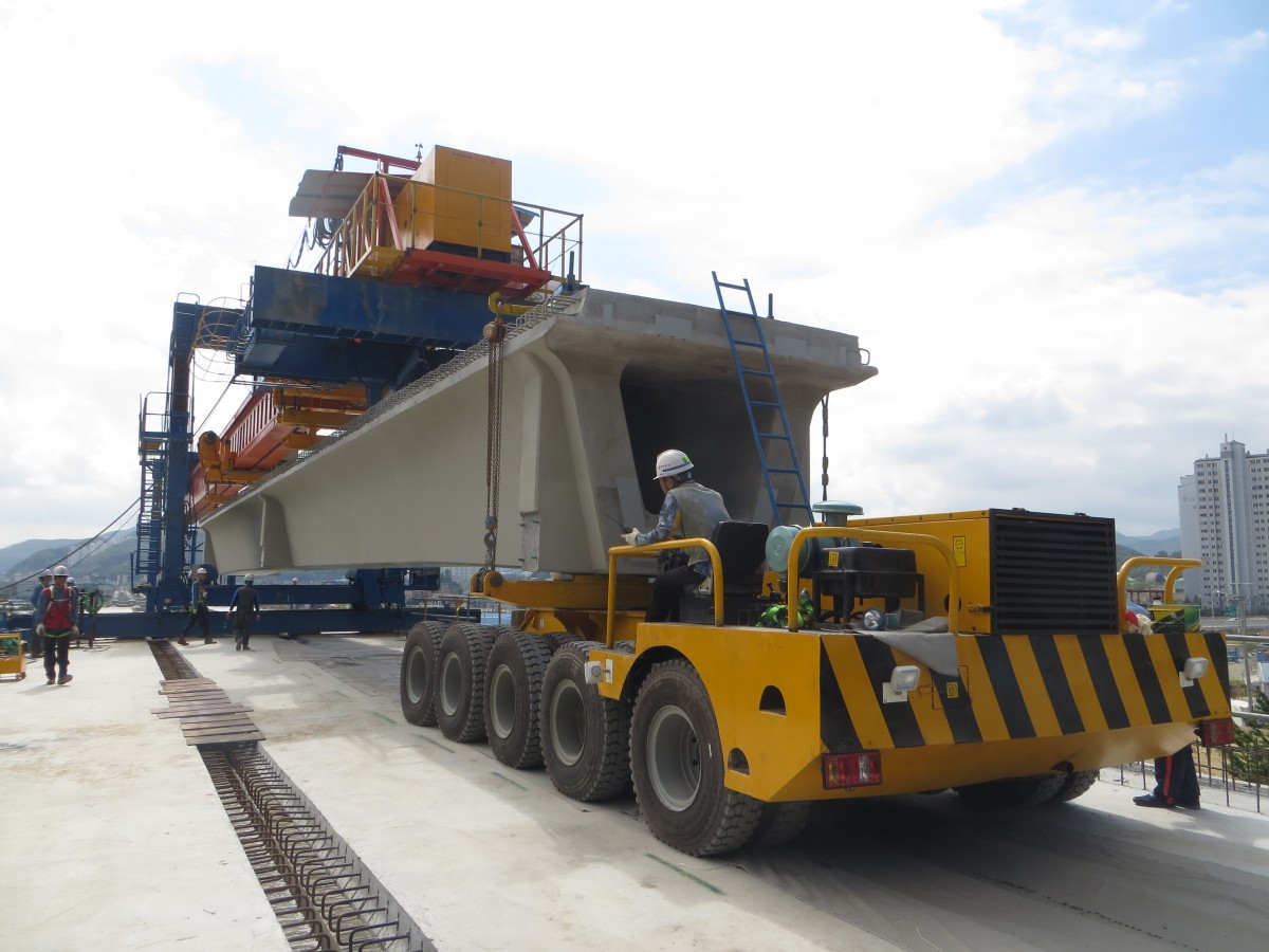 洛陽(yáng)龍派機(jī)械有限公司所生產(chǎn)的運(yùn)梁車(chē)是橋梁建設(shè)的配套設(shè)備,主要用于將預(yù)制梁從梁場(chǎng)運(yùn)送到架橋現(xiàn)場(chǎng),并配合架橋機(jī)進(jìn)行架橋作業(yè),也可用于架橋機(jī)的托運(yùn)。該系列運(yùn)梁車(chē)采用液壓驅(qū)動(dòng),操作方便,性能穩(wěn)定,安全可靠。